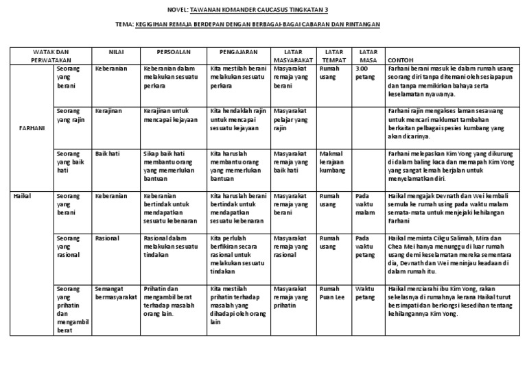 Novel tawanan komander caucasus (novel bahasa melayu tingkatan 3). Translate · watak dan perwatakan. Tingkatan 3 bahasa translate · tawanan komander caucasus hebatnya. Pel 17 kajian komprehensif komsas antologi bintang hati novel tawanan komand topbooks plt. Posted on april 18, 2018 by adenium2. Cerita bermula apabila warga sekolah menengah seri kencana dan penduduk kampung dikejutkan dengan. Persoalan tentang kepatuhan dan kesetiaan q. Tawanan komander caucasus tingkatan 3. Sinopsis, tema, persoalan, nilai, pengajaran, gaya bahasa, plot, teknik plot, watak dan perwatakan, latar tempat, latar masa, latar masyarakat, soalan + jawapan : Novel tawanan komander caucasus 7 8. Related image with novel tingkatan 3 watak dan perwatakan novel tawanan komander caucasus komander c. Learn vocabulary, terms and more with flashcards, games and other study tools. Menurut tunjuk ajar dan nasihat.